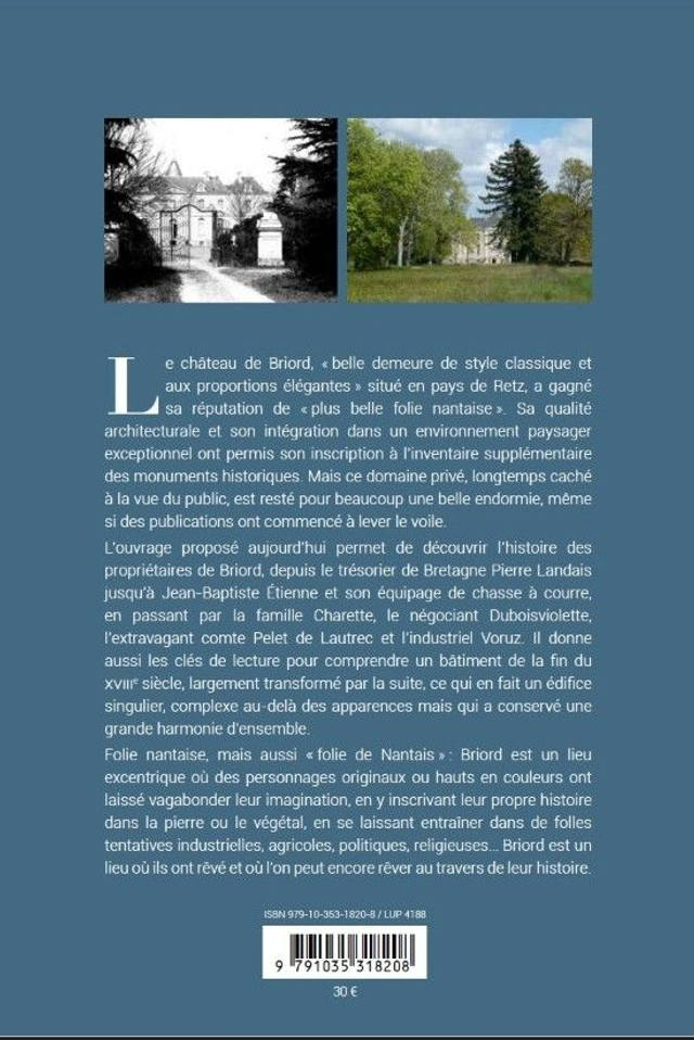 Retraçant sur plus de 200 pages, 8 siècles de l'histoire de la Terre de Briord, l'ouvrage "Le château de Briord, excentrique folie Nantaise" plonge le lecteur au cœur du Pays de Retz, du moyen âge aux années folles.